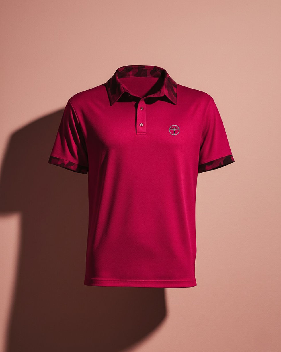 Unisex Red Camo Collarless Golf Polo | Innovator