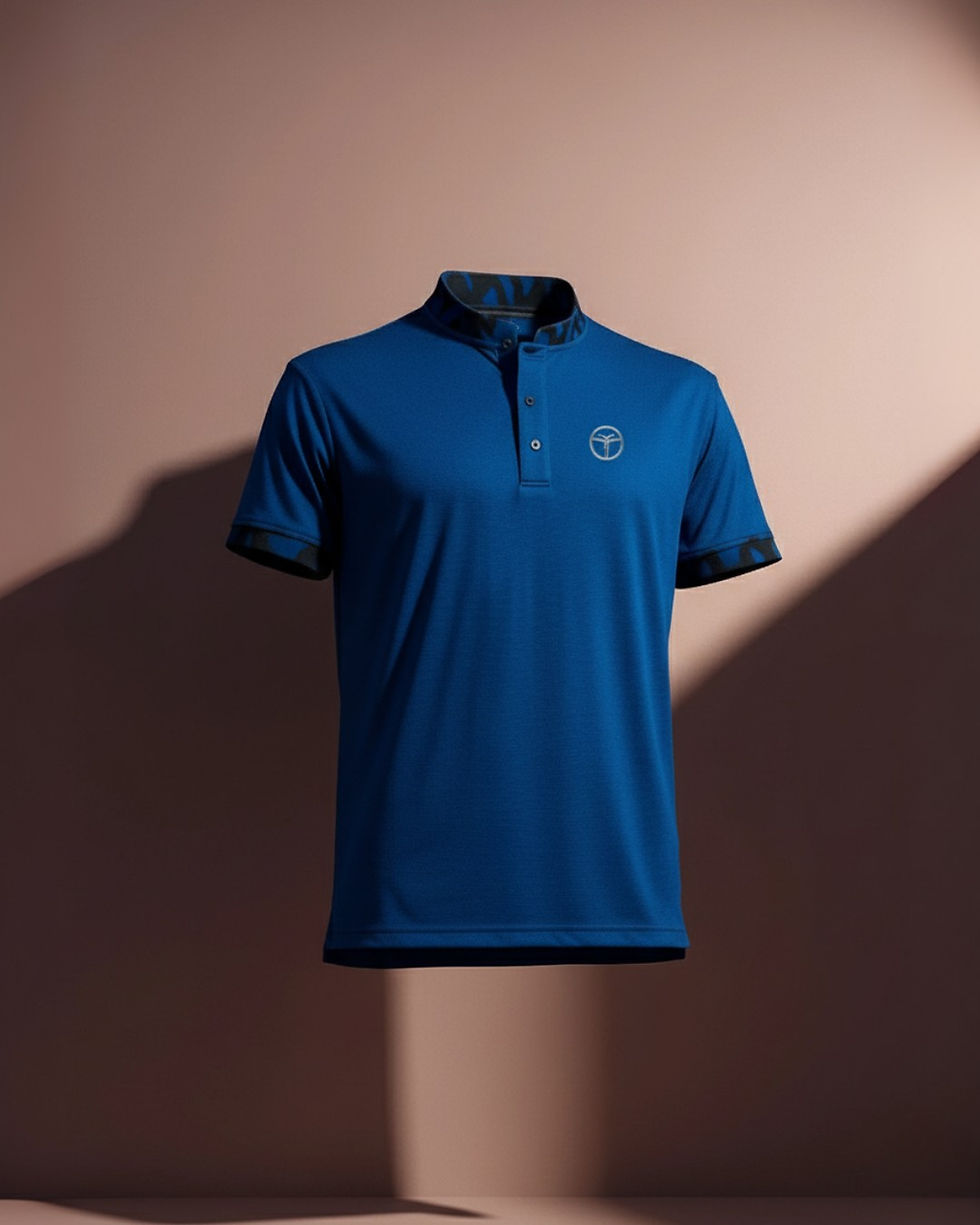 Unisex Blue Camo Collarless Golf Polo | Innovator